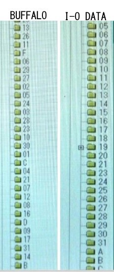 下図に示すようにBUFFALOのNASでは1,2,3~の数字やA,B,C~の文字が電子カルテに順不同で転送されているが、I-O DATA のWindows NASでは、数字、文字が順序よく転送されています。